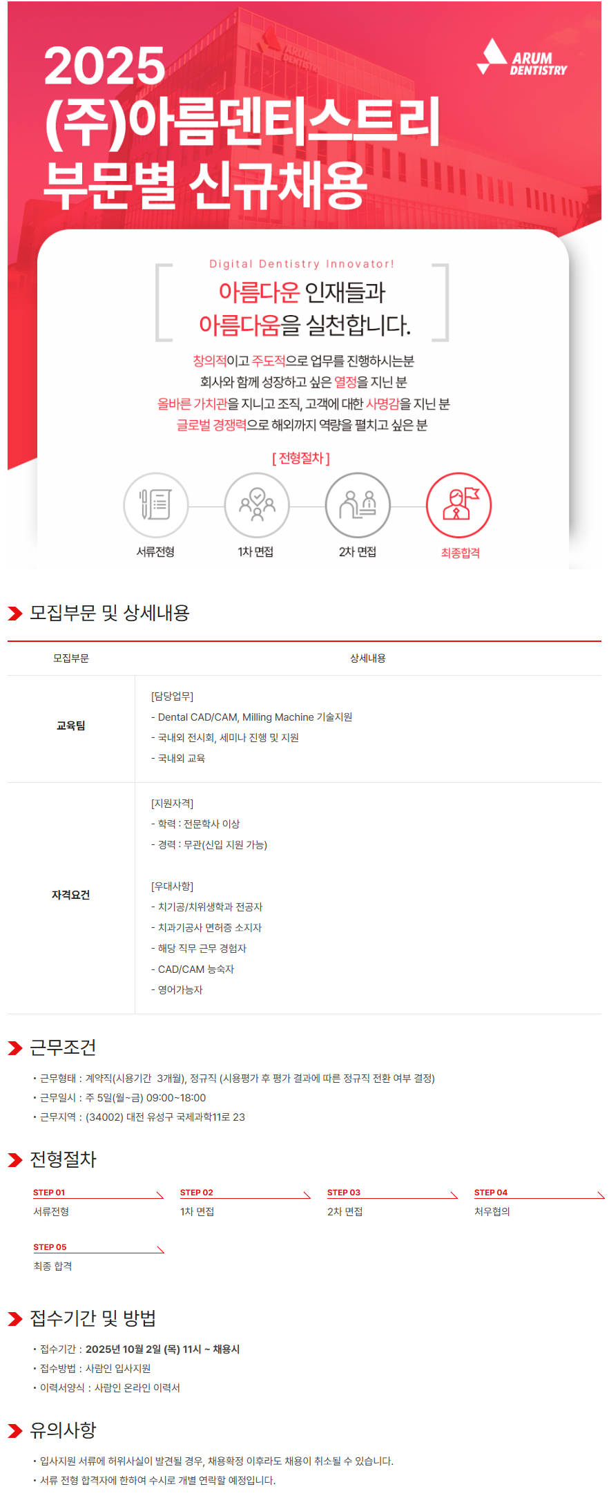 [아름덴티스트리] 교육팀 고객기술지원 담당자 채용