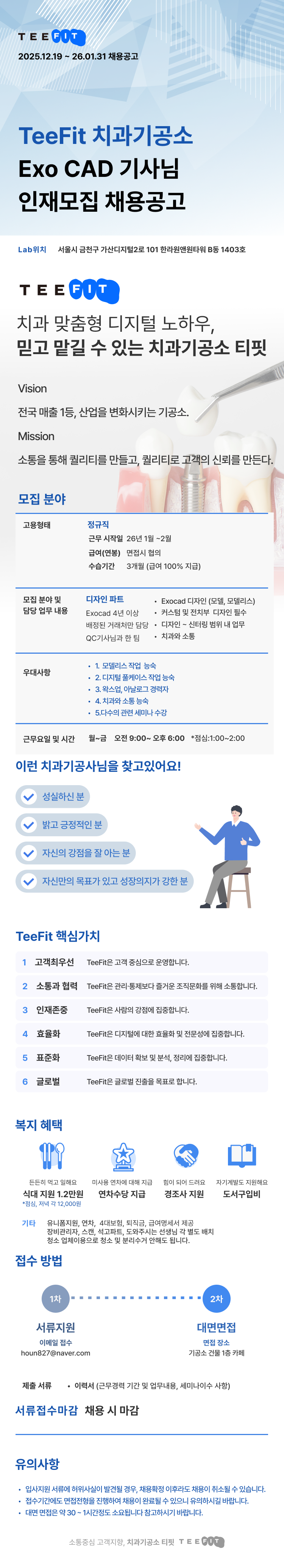 저희 기공소 비전&미션에 맞춰 함께 성장 하실 기사님을 찾고 있습니다