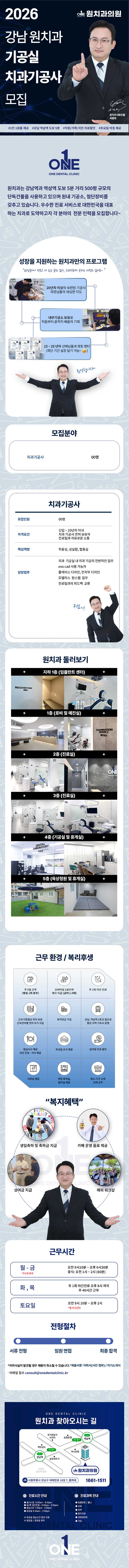 강남 원치과의원 기공실내 치과기공사(신입, 경력) 모집