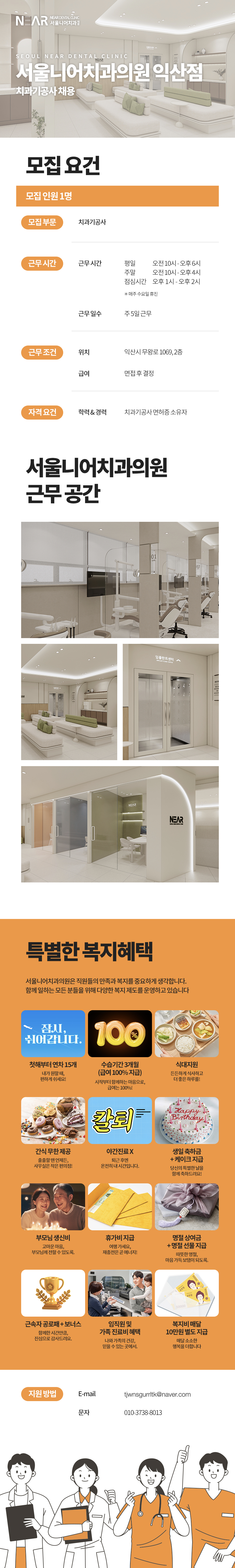 익산) 신규오픈예정 서울니어치과 익산점 원내기공사선생님 모집합니다